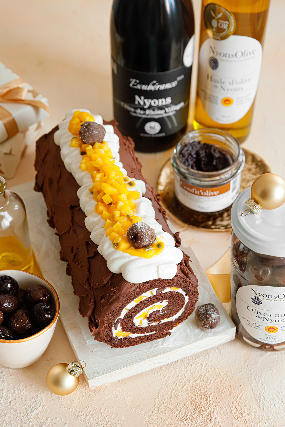 Un Côtes du Rhône Villages Nyons s’accordera à merveille avec cette bûche.